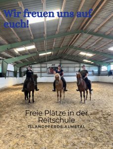 Unsere Reitschule bietet Reitunterricht für alle Altersklassen auf gut ausgebildeten, freundlichen Islandpferden. Ob erste Begegnung mit dem Pferd, bereits vorhandene Reiterfahrung oder der Wiedereinstieg nach einer Pause – bei uns sind alle herzlich willkommen.